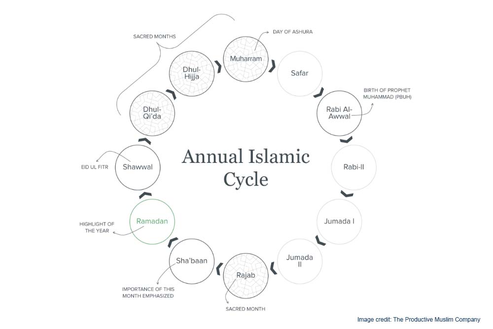 Muslims have a slightly different calendar from the ones typically used in schools, which might interest our children. The Islamic calendar is a lunar calendar where it is based on the phases of the moon. This is why you might notice our months move from year to year.